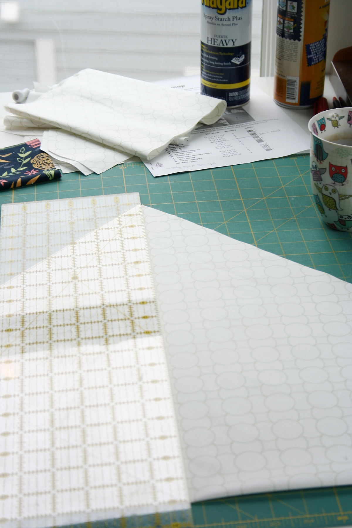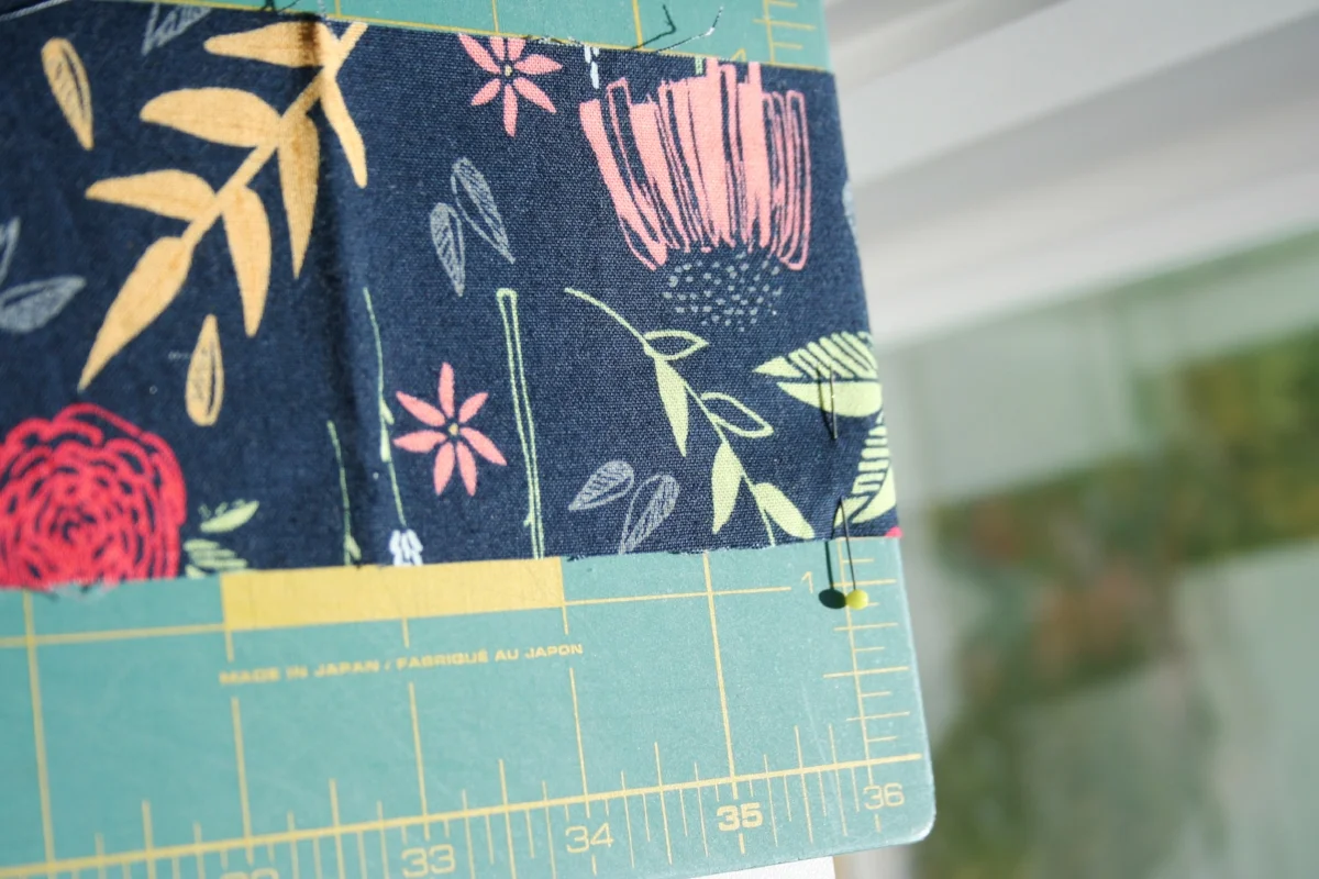 Tip: When I have to measure and cut pieces that are longer than my 36” cutting mat, I place a pin to mark the end of my mat (in this case 36”).